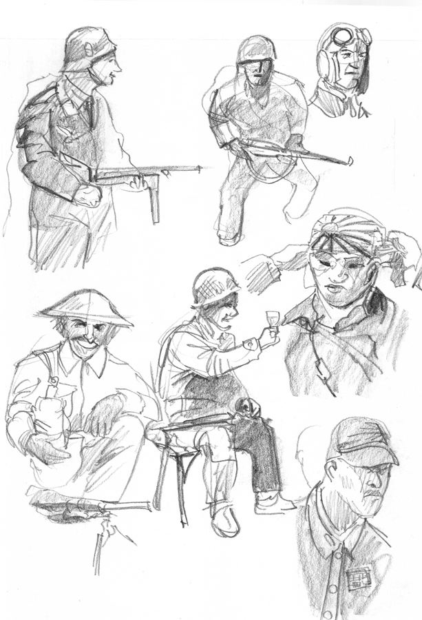 Sorry there's not more this week. These are studies from photos, the soldiers from WWII, the ladies from fashion photos.